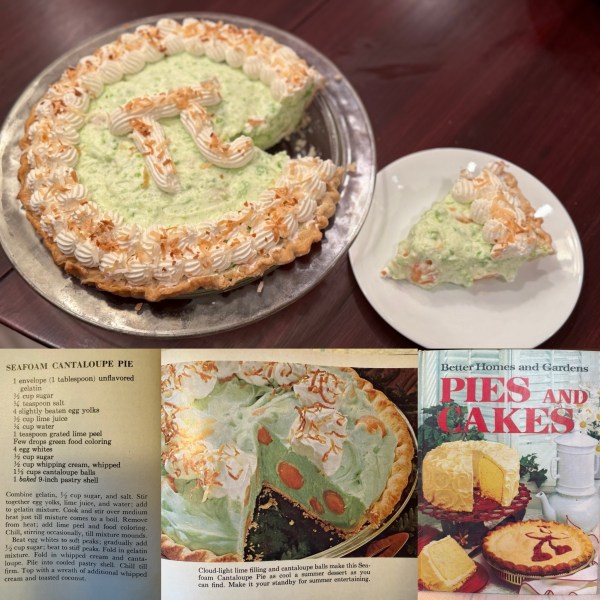 It’s Pi(e) Day 2026! I just got this cookbook a few weeks ago, and I’ve been waiting for Pi(e) Day to use it. I was paging through and I saw this light green mid-century nonsense. As a joke, I snapped a photo and sent it to my brother who usually joins me for the holiday. His response: “That’s some 50s house wife bullsh*t if I ever saw it…But yes.” And so it was!